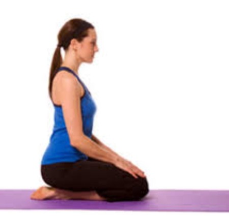अपने घुटनों को मोड़कर चटाई पर बैठें।