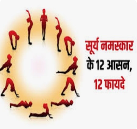 सूर्य नमस्कार योग के १२ आसनों के बारे मे जानने के लिए अगला ब्लॉक देखे।