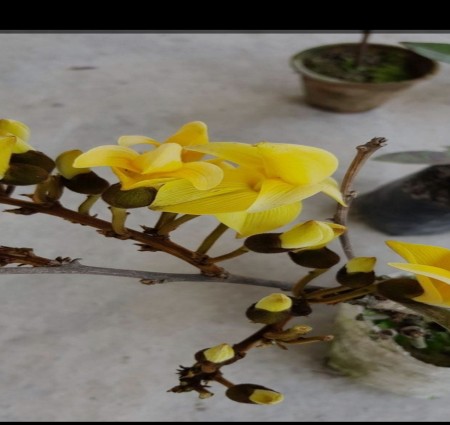 केसरिया रंग का पलाश न सिर्फ पहाड़ि आंचलो में, बल्कि मैदानी क्षेत्र में भी प्राय: देखने को मिलता है, लेकिन पीला पलाश वास्तव में विलुप्त होते जा रहा हैं । पीला पलाश छिंदवाड़ा, मंडल और बालाघाट के घने जगलों में महज एक _एक पेड़ ही दिखाई देता है, जिनका उल्लेख अखबारों या पत्रिकाओं में होता रहा हैं। खरगोन में पीला पलाश पीपलझोपा रोड पर बेनहुर गांव की ढलान पर और बिकन गांव । जीनिया के काकरिया से गोरखपुर जाने वाली सड़क पर कमल नार्वे के खेत की मेड़ पर पनप रहे हैं।