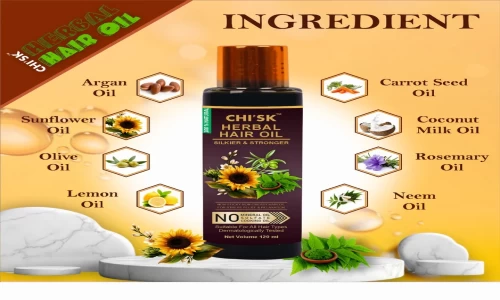 Reduction of Hair Fall : Herbal hair oils often contain ingredients known for their anti-inflammatory and anti-fungal properties, which help in reducing scalp irritation, dandruff, and hair fall. Neem oil, tea tree oil, and aloe vera are examples of ingredients that can promote a healthier scalp environment.
