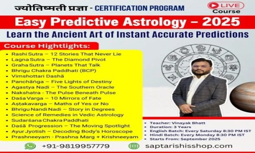 Master Vedic astrology with the 3‑year Easy Predictive Astrology 2025 program by Vinayak Bhatt. Learn step‑by‑step predictive techniques, chart reading, dashas, and practical applications through live online classes in English and Hindi.